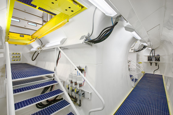 non-slip fiberglass grated walkways that are raised off the deck