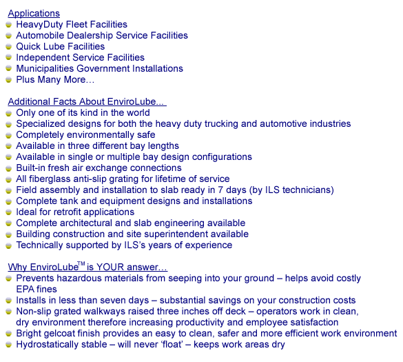 from leaking into the soil. EnviroLube’s service bays and